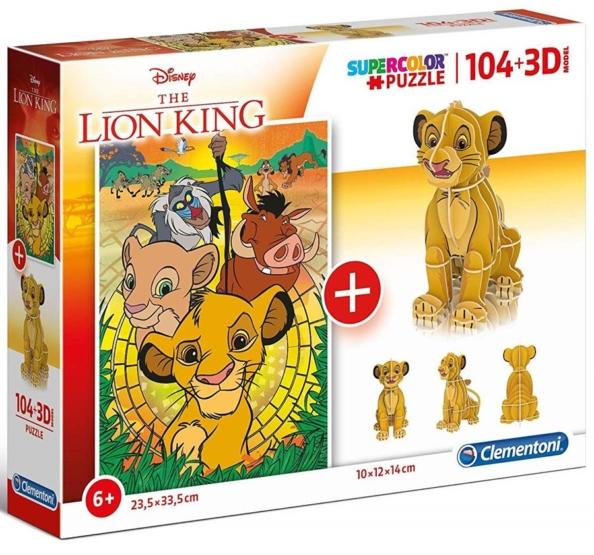 Disney: Oroszlánkirály 104 db-os puzzle + 3D-s Simba modell - Clementoni