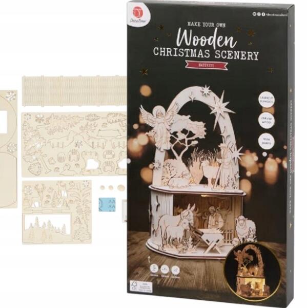 DecoTime Csináld Magad Karácsonyi Jelenet DécoTime Fából Készült Téli Led Betlehem 08 (3217467szopka)ALLEGRO