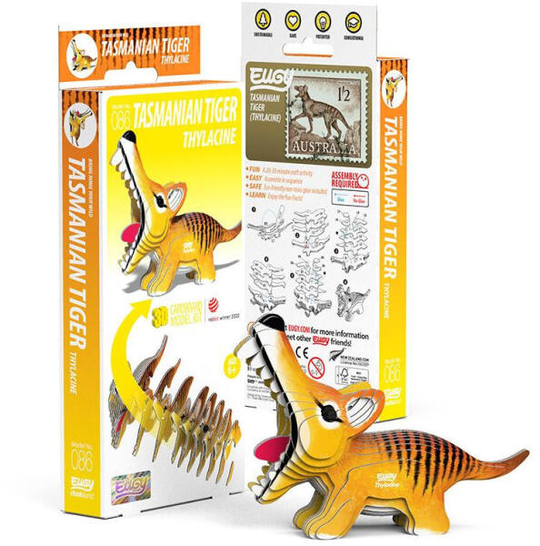 Fejleszd a kreativitásodat és figyelmedet! Az EUGY nemcsak szórakoztató, hanem környezetbarát is. Fedezd fel az erszényesfarkast! Fedezd fel a titokzatos erszényesfarkas világát, és építsd meg saját EUGY Erszényesfarkasodat! Az EUGY egy környezetbarát kartonból készült kreatív játék, amely könnyen újrahasznosítható. A mintákat környezetbarát festékkel nyomtatják, és a csomagban biztonságos, mérgező anyagoktól mentes ragasztó található. Teljesen gyerekbarát és kíméli a természetet! Az EUGY kollekcióban több mint 100 aranyos állatfigura közül választhatsz! Minden modellhez érdekes tények is tartoznak, amelyekből még többet megtudhatsz az adott állatról. Tökéletes ajándék gyerekeknek és állatrajongóknak, ráadásul egy környezetbarát gyűjthető sorozat első darabja is lehet! Az erszényesfarkas (más néven tasmaniai ördög) egy kis termetű, húsevő erszényes állat, amely csak a Tasmaniai szigeten él, máshol nem található meg a világon. Farkasra emlékeztető külseje, éles fogai és rettegett hangja miatt sokáig félreértették, ám valójában rendkívül fontos szerepet játszik a helyi ökoszisztémában. Az erszényesfarkas elsősorban dögevőként ismert, de képes saját vadászatot is végezni. A tasmaniai sziget egyedülálló élővilágának fontos része, és bár ritkán kerülnek közvetlen kapcsolatba az emberekkel, az erszényesfarkasok védelme kiemelt fontosságú. Az EUGY Erszényesfarkas 3D puzzle segítségével most te is megépítheted ezt a különleges állatot, miközben felfedezheted a titkait és jelentőségét. Ne hagyd ki! Építsd meg saját EUGY Erszényesfarkasodat, és merülj el Tasmaniat titkaiban!