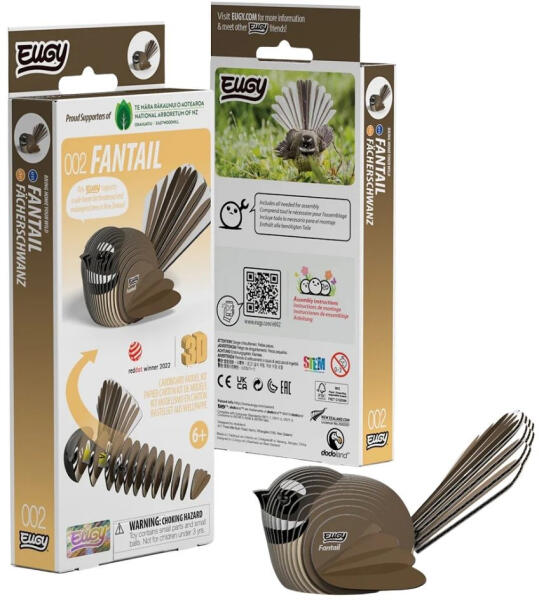 A Fan-tail EUGY modell finom testalkatával, széles farokmintázatával és kecses, mozdulatra kész megjelenésével idézi meg azt a madárkát, amelyet gyakran látni ugrálva, farokkal integetve. A részletek – tollazat, testarány, mozdulat – egyaránt gondosan kidolgozottak. A legyezőfarkú madár Né?p-Óceániában, kiváltképp Új-Zéland és Ausztrália környékén elterjedt, és fényes tollai „táncoló mozdulatokkal sokszor lenyűgözik a megfigyelőt. Az EUGY modell ezt az élő mozdulatosságot hozza el: mintha a figura bármely pillanatban fordulna vagy integetne. Az EUGY egy környezetbarát kartonból készült kreatív játék , amely könnyen újrahasznosítható . A mintákat környezeti festékkel nyomtatják, és a csomag mérgező anyagoktól mentes ragasztót tartalmaz. A kollekcióban több mint 100 állatfigura vár rád, mindegyikhez érdekes tények csatlakoznak. Tökéletes ajándék gyerekeknek, állatrajongóknak és természetbarátoknak . Szerezd be ezt a bájos madarat , és engedd, hogy a levegő tánca a polcodon is folytatódjon!