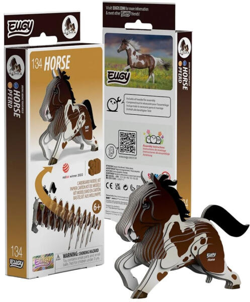 A Horse EUGY modell izmos testével, ívelt nyakával és figyelmes fejformájával éppen úgy jelenik meg, mintha bármely pillanatban lépne vagy vágtatna. Az arányok és részletek megadják a karakter erejét és kecsességét. A ló az ember történelmének egyik legfontosabb társa – használják munkára, vándorlásra, versenyre és társas témákra is. A mozgása, az eleganciája, a hűsége mind olyan tulajdonságok, amelyek miatt sok kultúrában szent állat. Az EUGY modell ezt az archetípust hozza el papírból: mozgásra kész, lélekben élő figura. Az EUGY egy környezetbarát kartonból készült kreatív játék, amely könnyen újrahasznosítható. A mintákat környezetbarát festékkel nyomtatják, és a csomag biztonságos, mérgező anyagoktól mentes ragasztót tartalmaz. Az EUGY kollekcióban több mint 100 aranyos állatfigura közül választhatsz, és mindegyikhez érdekes tények tartoznak, amelyekből még többet megtudhatsz az adott állatról. Tökéletes ajándék gyerekeknek, állatrajongóknak és természetbarátoknak! Szerezd be ezt a nemes állatot , és engedd, hogy a szabadság patái dobbantsanak a polcodon!