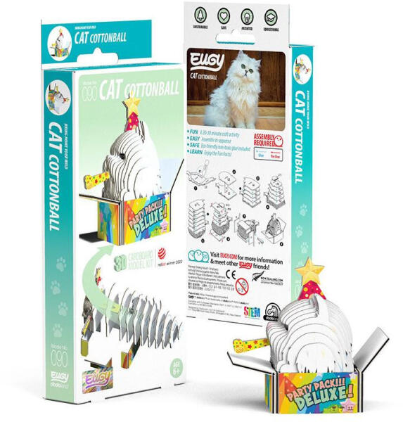 A Cottonball macska a puha, hófehér bundájával és kedves természetével az egyik legaranyosabb kis házikedvenc. A macskák híresek függetlenségükről, de a Cottonball mindig ott van, hogy örömet és szeretetet adjon. Fejleszd a kézügyességedet és építsd meg saját EUGY Cottonball macskádat ! Az újrahasznosított kartonból készült puzzle darabok segítségével egy bájos, fehér macska születik, amely a szobád tökéletes díszévé válik. Az EUGY nemcsak kreativitást ösztönöz, hanem környezetbarát is. Hozd el a kedves, hófehér Cottonball macskát, és teremtsd meg a tavasz frissességét! Ismerkedj meg Cottonballal! A kedves óriással, aki könnyed, édes és társaságkedvelő. Az EUGY egy környezetbarát kartonból készült kreatív játék, amely könnyen újrahasznosítható. A mintákat környezetbarát festékkel nyomtatják, és a csomagban biztonságos, mérgező anyagoktól mentes ragasztó található. Teljesen gyerekbarát és kíméli a természetet! Az EUGY kollekcióban több mint 100 aranyos állatfigura közül választhatsz! Minden modellhez érdekes tények is tartoznak, amelyekből még többet megtudhatsz az adott állatról. Tökéletes ajándék gyerekeknek és állatrajongóknak, ráadásul egy környezetbarát gyűjthető sorozat első darabja is lehet! A Cottonball egy igazán bájos, szeretetre méltó macska, aki mindig kész a vidámságra és ünneplésre. Ő a társaság központja, akit mindenki szeret, hiszen kedvessége és barátságos természete könnyedén elvarázsolja az embereket. Cottonball egy igazi "gentle giant", aki sosem hagyja ki a lehetőséget, hogy megossza örömét másokkal. Bármilyen alkalomról legyen szó, Cottonball mindig jelen van, hogy hozzájáruljon a boldog pillanatokhoz. Ezt a cuki cicát most te is megépítheted az EUGY 3D puzzle segítségével. Éld át a szórakoztató építési élményt, miközben megismered a kedves és játékos macskák világát. Cottonball egy igazán különleges darabja lesz a gyűjteményednek, és tökéletes ajándék lehet cicakedvelőknek vagy bárkinek, aki szeret egy kicsit elmerülni a kreatív alkotásban. Ne hagyd ki! Építsd meg a saját Cottonball macskádat, és hozd el a szeretet és öröm világát otthonodba!