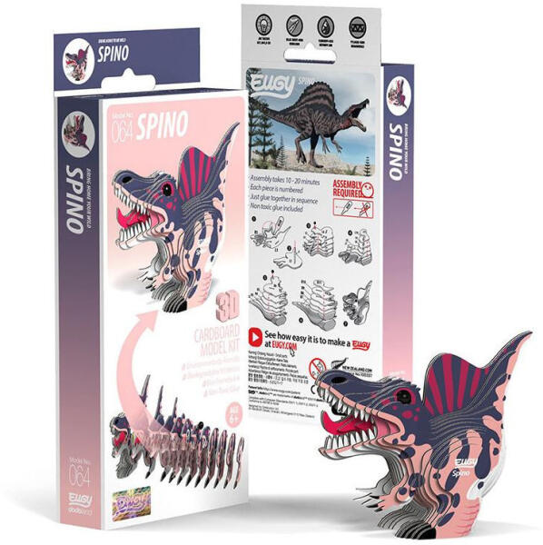 A Szpinoszaurusz egy hatalmas, ragadozó dinoszaurusz, amely a kréta időszakban élt. Neve a hátán lévő, kígyószerű, hosszan elnyúló "úszó" gerincéről származik, amely segített neki a vadászatban és a hőszabályozásban. Fejleszd a kézügyességedet és hozd létre a saját EUGY Szpinoszaurusz 3D puzzle -odat! A kartonból készült, számozott puzzle darabok segítségével könnyedén megépítheted ezt a lenyűgöző dinoszauruszt. Az EUGY nemcsak a kreativitást ösztönzi, hanem környezetbarát is, így egy fenntartható módon élvezheted a szórakozást. Ne habozz, építsd meg a saját ősi világodat! Hozd vissza a dinoszauruszok korát, és építsd meg a saját Szpinoszauruszodat! Az EUGY egy környezetbarát kartonból készült kreatív játék, amely könnyen újrahasznosítható. A mintákat környezetbarát festékkel nyomtatják, és a csomagban biztonságos, mérgező anyagoktól mentes ragasztó található. Teljesen gyerekbarát és kíméli a természetet! Az EUGY kollekcióban több mint 100 aranyos állatfigura közül választhatsz! Minden modellhez érdekes tények is tartoznak, amelyekből még többet megtudhatsz az adott állatról. Tökéletes ajándék gyerekeknek és dinoszaurusz-rajongóknak, ráadásul egy környezetbarát gyűjthető sorozat első darabja is lehet! A Szpinoszaurusz egy hatalmas, hüllő alakú dinoszaurusz, amely több mint 100 millió évvel ezelőtt élt a földön. A különleges megjelenéséről ismert, hiszen hosszú, tüskés nyúlványokkal rendelkezett a hátán, amelyeket egy hatalmas bőrredő támasztott alá. A Szpinoszaurusz hatalmas mérete és erőteljes állkapcsa miatt ragadozóként élt, és egyes kutatások szerint akár nagyobb, szárazföldi állatokkal is táplálkozott. Bár a kutatók sokáig vitatkoztak, hogy pontosan milyen állatokat fogyaszthatott, valószínűleg más dinoszauruszok és nagy halak is szerepeltek az étlapján. Most te is megépítheted a Szpinoszauruszt egy izgalmas és szórakoztató 3D puzzle segítségével, miközben még többet tanulhatsz erről az ősi lényről. Ez a puzzle nemcsak szórakoztató, de lehetőséget ad arra, hogy jobban megismerd a dinoszauruszok világát. Ne hagyd ki – építsd meg saját Szpinoszauruszodat, és hozd vissza a dinoszauruszok varázsát otthonodba!