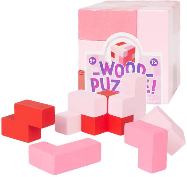Logikai fa kirakó 3D puzzle Kocka 8 x 8 x 8 cm rózsaszín High5 (3010166)