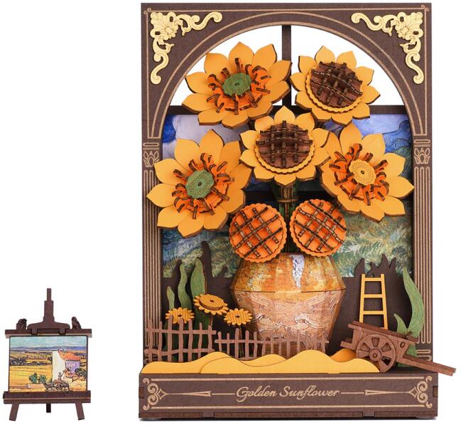 Robotime Arany napraforgó ledes dekor - 266db-os 3D fa kirakó TH002 ROWOOD