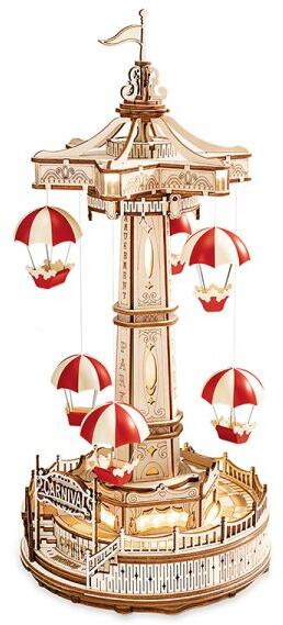 Robotime ROKR 3D lézervágott fa ejtőernyős - zenél és mozog - 184db-os EA01